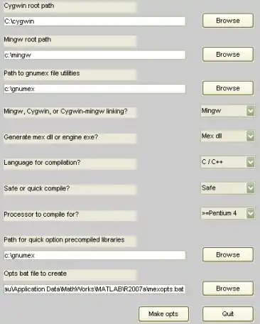 Now hit the Make opts button. Gnumex itself uses 2 mex files shortpath.dll and getpath.dll to be exact, so if you receive an error like this: