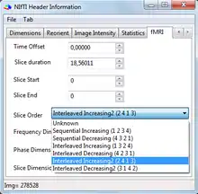 - ↑ Katherine Alfred, Slice Order Acquisition (on Philips scanners), DBIC, Darthmouth University, archived from the original on 2017-03-23, https://web.archive.org/web/20170323084404/http://dbic.dartmouth.edu/wiki/index.php/Slice_Acquisition_Order, retrieved 2017-11-06