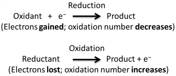 Oxidation-reduction reactions are electron transfers between two objects. For simplicity this type of reaction should have simply been called "electron transfer," but it was named oxidation-reduction because 1) oxidation is what happens when a metal is exposed to oxygen--for instance, iron turning to rust. Chemists of old realized this and said the iron had been oxidized. Later, when studying this type of reaction in depth it was learned that oxygen does not have to be involved. It was also realized that there was a loss, or reduction, in charge from the other agent involved in the reaction. Hence, reduction and oxidation happen at the same time, and sometimes this reaction is just called "Redox." In redox reactions the oxidation number of an ion, molecule, or atom changes by either losing or gaining an electron. One way to remember the process of Redox reaction is through the mnemonic OIL RIG. OIL = Oxidation Is Loss (of an electron) and RIG = Reduction Is Gain (of an electron).