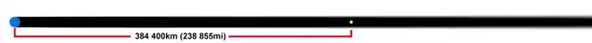 The umbra (Latin for "shadow") is the innermost and darkest part of a shadow, where the light source is completely blocked by the blocking body. Such as an opaque object does not let light through it. An observer in the umbra experiences a total eclipse. The umbra of a round body blocking a round light source forms a right circular cone; to a viewer at the cone's apex, the two bodies are equal in apparent size. The distance from the Moon to the apex of its umbra is roughly equal to that between the Moon and Earth. Because the Earth is 3.7 times wider than the Moon, its umbra extends correspondingly farther, roughly 1.4 million kilometers.