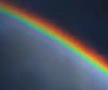 Rainbows form in the sky when sunlight refracts (bends) as it passes through raindrops, it acts in the same way when it passes through your glass of water. The sunlight refracts, separating it into the colors red, orange, yellow, green, blue, indigo and violet.