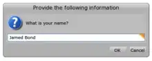 . It shows a dialog box where the user can enter some text. The call returns that text as a string. Try this in a Workspace, and make sure you "print" the resulting value: