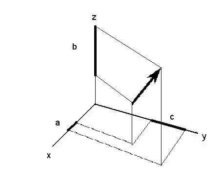 The vector represented by the bold arrow has components a, b and c which are lengths on the coordinate axes. If the vector starts at the origin the components become simply the coordinates of the end point of the vector and the vector is known as the position vector of the end point.