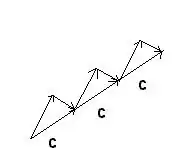 The bottom vector c is added three times which is equivalent to multiplying it by 3.
