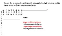 Homology is an important tool in evolutionary biology. Substitution matrix is one way to study homology in that it describes the similarities in protein sequences or in DNA Sequences. It accomplishes this by assigning a point system where the two sequences are compared to their randomized sequences. Amino acids have a certain ability to mutate into another amino acid. Hydrophobic amino acids, (i.g. Valine) have greater chance to mutate to another hydrophobic amino acid (i.g. Leucine). Substitutions that are made often receive a high positive score and rare substitution have given negative scores. Identical amino acid matches are also given points in a substitution matrix. There many types of substitution matrix that have been developed that have assigned different points for substitution examples are PAM, Blosum, BLAST matrices. These matrices are 20X20 matrices for protein. Blosum ( block substitution) matrices calculates homology by comparing blocks of conserved sequences in many sequence alignments compared to the identity sequence. The blocks are assumed to have functional significance in evolutionary biology.