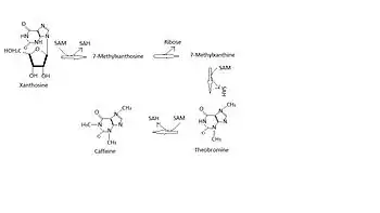 - 1 2 Mohanpuria, P, & Mohanpuria, P. (2009). Caffeine biosynthesis and degradation in tea [Camellia sinensis (L.) O. Kuntze] is under developmental and seasonal regulation. Molecular biotechnology, 43(2), 104-.