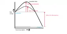 The enzyme function and catalysis result from the ability to stabilize the transition state in a chemical reaction. The transition state is the highest energy species in a reaction. It is a transitory molecular structure that is no longer the substrate but is not yet the product. It is the most seldom occupied species along the reaction pathway. The difference in free energy between the transition state and the substrate is called the Gibbs free energy of activation or simply the activation energy.