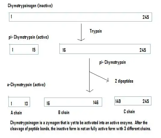 Once chymotrypsinogen is cleaved by trypsin, and reacted with Chymotrypsin produces a fully active enzyme, Chymotrypsin. Chymotrypsin is found in the digestive system of mammals, as well as other organisms. It works by cleaving peptides at the carboxyl end of aromatic amino acids (Tryptophan, Tyrosin, and Phenylalanine)
