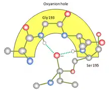 Oxygen develops a partially negative charge in the oxyanion hole.