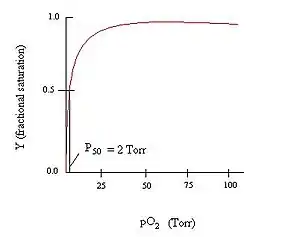 Myoglobin follows the Michaelis-Menten Kinetic graph (as seen from the graph above). It follows the Michaelis-Menten kinetics because it is a simple chemical equilibrium.