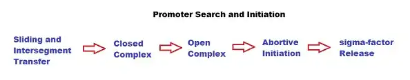 To start transcription, RNA Polymerase (RNAP) must recognize and bind to a promoter sequence. Some factors include assisting the polymerase to an open promoter complex in which the DNA exposes the bases, forming a transcription bubble. Then, RNAP typically undergoes an abortive initiation in which the process synthesizes short strands of RNA transcripts. RNAP returns to the initial promoter site and escapes the region by forming a stable, transcription elongation complex (TEC) which is able to transcribe the whole gene.