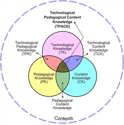 Technological Pedagogical and Content Knowledge (TPACK) attempts to identify the knowledge required by teachers to integrate technology in their teaching, the content knowledge needed to be successful teaching a particular subject, and the knowledge of the best pedagogical approach share the information. As the figure above illustrates there is a complex interplay among the knowledge forms. The TPaCK framework builds on Shulman’s idea of Pedagogical Content Knowledge, and it was developed by Punya Mishra and Matthew J. Koehler.