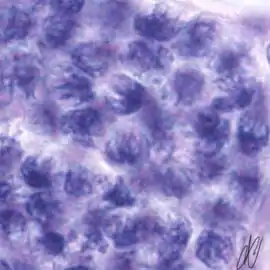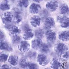 8. spermatocyte, zygotene stage of meiotic prophase ("bouquet" configuration of chromosomes) |