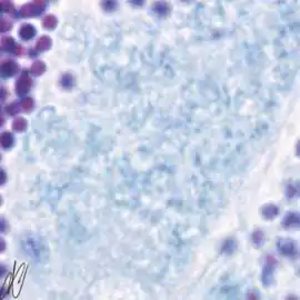 spermatogenesiscysts with successive stages of spermatogenesis in a seminiferous tubule | |||