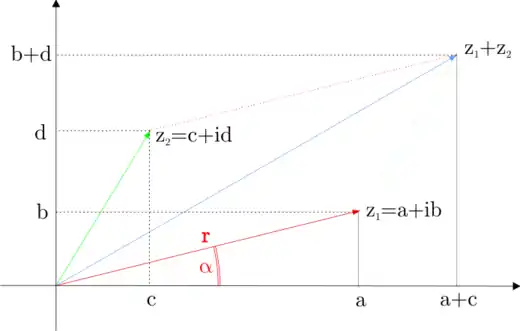 As you can see, adding two complex numbers is done in the same way as adding two vectors and in a plane.