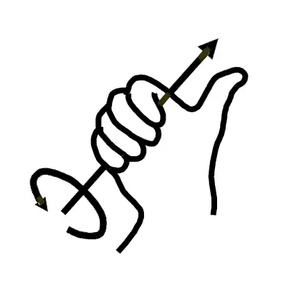 Let us represent this infinitesimal rectangle of area (lying in the - plane) by a vector whose magnitude equals and which is perpendicular to the rectangle. (There are two possible directions. The right-hand rule illustrated on the right indicates how the direction of is related to the direction of circulation.) This allows us to write (***) as a scalar (product) Being a scalar, it it is invariant under rotations either of the coordinate axes or of the infinitesimal rectangle. Hence if we cover a surface with infinitesimal rectangles and add up their circulations, we get