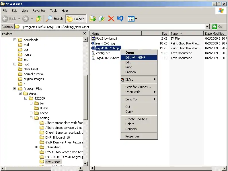 This opens up a Windows folder containing the asset. We now want to edit the .bmp file using GIMP