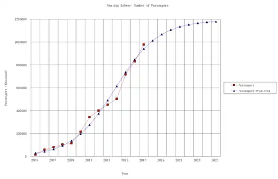 Table 1. Nanjing Metro 2005-2017 Real/Predicted Passengers Carried |