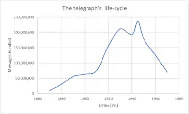 The decline of the telegraph occurred just after 1930 and continued to fall, until its complete dismissal during the start of the 20th century. Nevertheless, the telegraph allowed for businesses and existing technologies to flourish; Hence, if not for the telegraph and its communication potential, methods of production commonly seen today would have not existed or been established on a solid foundation as they are right now.