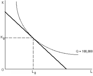 Equivalently, the isoquant is the locus of combinations of K and L which will yield the same level of output and the slope () of the isoquant is equal to the ratio of marginal products.