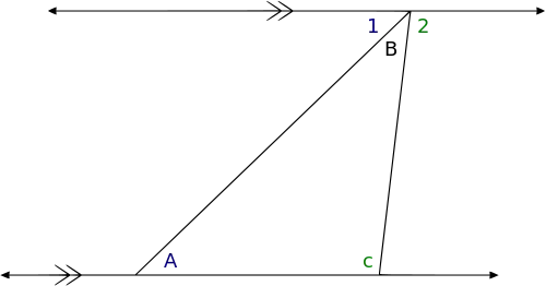 - . Euclid has a proposition about lines crossing parallel lines - that they cross at the same angle, and this is a consequence of that.
