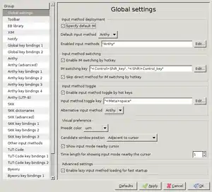 The main configuration options are which input methods are used and the keyboard shortcuts to activate them.