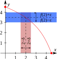 Alternatively written, continuity of f : I → R at c ∈ I means that for every ε > 0 there exists a δ > 0 such that for all x ∈ I,: