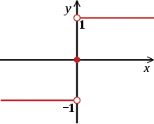 An example of a discontinuous function is the function f defined by f(x) = 1 if x > 0, f(x) = 0 if x ≤ 0. Pick for instance ε = 1⁄2. There is no δ-neighborhood around x = 0 that will force all the f(x) values to be within ε of f(0). Intuitively we can think of this type of discontinuity as a sudden jump in function values. Similarly, the signum or sign function