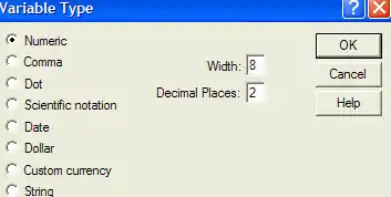 Most variables will be “Numeric,” meaning they will be number based, either because the number itself is meaningful (interval/ratio variables) or because it represents distinct categories. Other common variable types are String, for text, Date, and Currency. Select the desired type and click OK.
