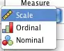 Finally, you must specify your level of measurement. This may be done by clicking on the cell under the column labeled “Measure” and choosing from Nominal, Ordinal, and Scale: