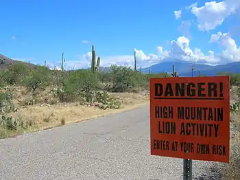 On January 8, 2004 a puma killed and partly ate a mountain biker in Whiting Ranch Wilderness Park, in Orange County, California, but attacks on humans are rare.
