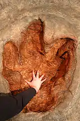 The famous fossil hunter Barnum Brown found the first Tyrannosaurus fossil in 1905. Tyrannosaurus was not the dinosaur's name until 1905, when it was given that name by Henry Fairfield Osborn. About 3,000 Tyrannosaurus fossils have been found, from pieces of teeth to nearly complete skeletons. Only one possible Tyrannosaurus footprint has been found.