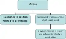 - Displacement — It is defined as the change in the position of the object in a fixed direction.