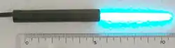 The light bulb has a tungsten filament as the light emitting media. Electricity flows through a thin tungsten wire in the light bulb called the filament. The filament used in a bulb has a property called "resistance." Resistance is the amount of friction that an object will put against electricity flowing through it. Tungsten filament are manufactured in a way that it has a lot of resistance to electricity. As a result of this resistance, the filament heats up and starts glowing, converting electrical energy to light energy. This is because of the Joule-effect, which means that resistances heat up when an electrical current runs through them. The electricity is converted into light and heat illuminating its surroundings.