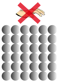In solids, the particles are cramped together tightly in regular positions, and they can only vibrate (wobble) a little, but in fixed positions. Their positions cannot change freely, as a result. |