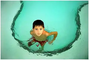 Chlorine is commonly used to purify water so it is clean enough to bath in. Almost all public pools use chlorine as a cleaning chemical for water. Chlorinated water can be toxic at high concentrations. Chlorine as a gas is incredibly dangerous, and has been used as a chemical weapon. Chlorine is also used in bleaches.