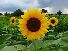 SunflowersSunflowers are a large plant with yellow flowers. They can grow very tall, and many birds and animals like eating them. DirectionsWith your Sunflower seeds and all of your tools ready, it is time to plant and grow some Sunflowers! ![]() A Sunflower seed. Step 1First, you have to separate and count the seeds that you want to plant. Sunflower seeds are small, but you should be able to separate them with your hands. ![]() Leave a little space from the top of the pot. Step 2Then, either use your hands or a small cup to put your soil into the pot. This can be messy! You might want to do this outside, or over your sink because the soil can clump together and spill. Fill the pot with soil until it is close to the top. Gently push on the soil so it is a little firm, but do not too push too hard.