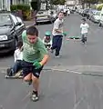 In land transport there also exists interesting phenomenon as walking buses and bike buses/ bike trains, convoys and wagon trains. These are collective forms of transport (that could loosely be termed vehicles) but not mechanised in the whole (the linking together is unmechanised unlike locomotives or road trains) only in their individual unit parts except the walking bus.