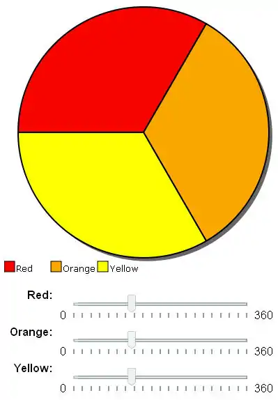 You want to use range controls to interactively change a drawing such as a pie chart. In this case we use a JavaScript library that modifies an SVG image. The data for the pie chart is kept in an instance in the model.