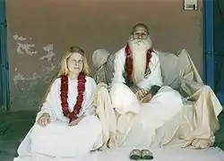 Neem Karoli Baba was a Hindu guru and devotee of the Hindu deity Hanuman. He is known outside India for being the guru of a number of Americans who travelled to India in the 1960s and 1970s, the most well-known being the spiritual teachers Ram Dass and Bhagavan Das, and the musicians Krishna Das and Jai Uttal. His ashrams are in Kainchi, Vrindavan, Rishikesh, Shimla, Bhumiadhar, Hanuman Gadi, Lucknow, Delhi in India and in Taos, New Mexico, USA. He was born in an affluent Brahmin family and his father's name was Pundit Durga Prasad 'Vedacharya'. He was married to Rambeti (daughter of Pundit Rewati Ram) and had three children. But he left his married life to become an independent yogi. He wandered throughout northern India as a sadhu. Neem Karoli was a lifelong adept of bhakti yoga, and encouraged service to others (seva) as the highest form of unconditional devotion to God. He worshiped all the gods and all religions. From 1967 to 1973, many young people came from the West to Neem Karoli Baba. He showed them different spiritual practices. Some he gave the path of Hatha Yoga and others the path of Karma Yoga. For the majority of his followers, he taught the way of the Master Yoga (Bhakti Yoga). The Way of the Master Yoga is to connect oneself every day with an enlightened Master. Neem Karoli Baba taught the individual spiritual path. His exercises were tailored individual to each student. On his festivals, there were lots of candy. One of his favorite sayings was, "Eat sweets, drink tea." In the book Miracle of Love, compiled by Ram Dass, a devotee named Anjani shares the following account: There can be no biography of him. Facts are few, stories many. He seems to have been known by different names in many parts of India, appearing and disappearing through the years. He said, that he was ‘nobody.’ Simple stories were his teachings. Usually he sat or lay on a wooden bench wrapped in a plaid blanket while a few devotees sat around him. Visitors came and went; they were given food, a few words, a nod, a slap on the head or back, and they were sent away. There was gossip and laughter for he loved to joke. Orders for running the ashram were given, usually in a piercing yell across the compound. Sometimes he sat in silence, absorbed in another world to which we could not follow, but bliss and peace poured down on us.