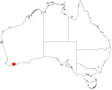 It is native to an area in the Great Southern region of Western Australia where it is commonly situated in sheltered sites near summits and in gullies along creeks and streams.[2] The range of the plant is contained within the Stirling Range National Park as a part of Eucalyptus marginata - Corymbia calophylla or Eucalyptus wandoo woodlands or forest communities.[1]