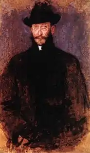 He was born to a land-owning family, but chose to disregard his father's wishes and left home to study at the Imperial Academy of Arts from 1882 to 1885. His primary instructor there was Bogdan Willewalde.[1] In 1886, he had to interrupt his studies when his family fell into financial difficulties and return home to help save their estate.[2] In 1890, he moved to Warsaw, where he found work as an illustrator for the magazine Tygodnik Illustrowany.[3]