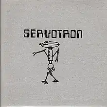 Batteries Included was Servotron's second release. It is also referred to as Red Robot Refund or Servotron. It was released on gray vinyl and black vinyl in 1996 on Goldenrod. The cover is all gray with raised Servotron lettering. The plastic sleeves with the gray version are screened with the same lettering and a robot walking (pictured). "Red Robot Refund" is about the red robot (R5-D4) in Star Wars Episode IV: A New Hope that Uncle Owen buys but immediately malfunctions. "Batteries Included" is a song about vibrators and how their use will cause the extinction of the human race through lack of reproduction.