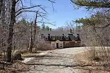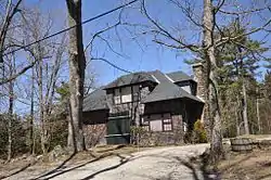 Several houses on Mason Road were built for members of the Thayer family around the turn of the 20th century. The L. H. Thayer House and the S. E. Thayer house, both located on the south side of Mason Road, were designed by the Boston firm of Kendall, Taylor and Stevens, and are among Harrisville's finest examples of Shingle style. A third house, built for L. E. Thayer in 1900, was destroyed by fire in 1975, and replaced by a Post-modern Shingle house with similar massing and sympathetic styling. This third house, along with several of Skyfield's outbuildings, do not contribute to the district's significance.[2]