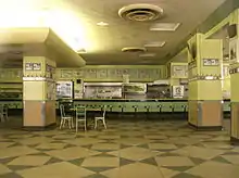 In 1929 they moved to de Maisonneuve (formerly Burnside) and Mansfield, and to their final location in 1949.[4] The restaurant was open 23 hours daily, closed only for cleaning. The 1001 Burnside location, in the theatre district behind the Sheraton Mount Royal Hotel, was a popular late-night dining haunt for celebrities and movie stars.