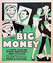 Big Money is a 1930 American pre-Code comedy-drama film directed by Russell Mack and starring Eddie Quillan, Robert Armstrong, and James Gleason.[1] It was produced and distributed by Pathé Exchange, shortly before the company was completely absorbed by RKO.