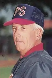 William Charles Lachemann (born April 5, 1934 at Los Angeles) is an American professional baseball coach. A longtime member of the Los Angeles Angels of Anaheim organization, in 2018 at age 84 he was still active in professional baseball as the Angel organization's roving catching instructor.[1][2] He is the eldest brother of three siblings who have had long careers in the game: Marcel and Rene have been players, managers and coaches in Major League Baseball and also remain active in the game. In 1995 and 1996, Bill Lachemann served as bullpen coach on the staff of his brother Marcel, then skipper of the Angels.[3]