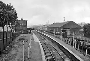 Bilston Central railway station was a station on the London Paddington to Birkenhead via Birmingham Snow Hill line. It was built in 1854 and served the town of Bilston in the West Midlands. It closed in 1972,[2] with the end of passenger services on the Snow Hill and the line to Wolverhampton, although goods trains continued to pass through the site of the station until this section of the line was closed in January 1983. It saw a second incarnation when a Midland Metro stop of the same name was opened a few hundred yards away in May 1999.