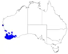 - 1 2 3 Marshall, John; Wilson, Margaret; Tullis, Brian (1990). Wildflowers of the West Coast Hills Region : the plants and flowers of the Darling Scarp and Range in the Kalamunda Shire, the backdrop to Perth, Western Australia (2002 (revised) ed.). Western Australia: Quality Publishing Australia. p. 64. ISBN 1875737243.