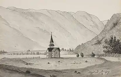 The earliest existing historical records of the church date back to the year 1316, but the church was not new that year. In 1669, the old stave church was torn down and replaced with a new building. Not much is known about that building.[3]